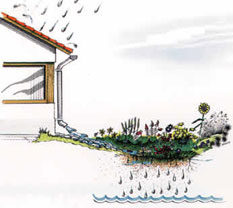 - Sammeln Sie das Regenwasser von den Dachflächen und benutzen Sie es zur Gartenbewässerung und dem Erhalt vorhandener/ vorgeschriebener Bepflanzung (Dürresommer).